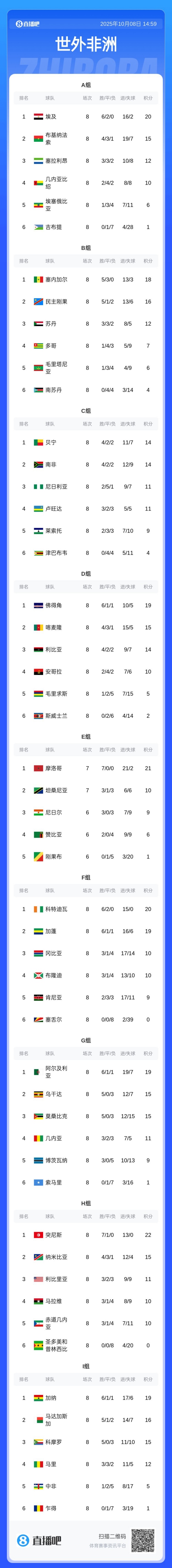 10月08日讯 2026年世界杯非洲区预选赛进入最后的冲刺,小组赛还剩两轮,排名小组第一的埃及明日0:00将客战弱旅、FIFA排名193的吉布提。